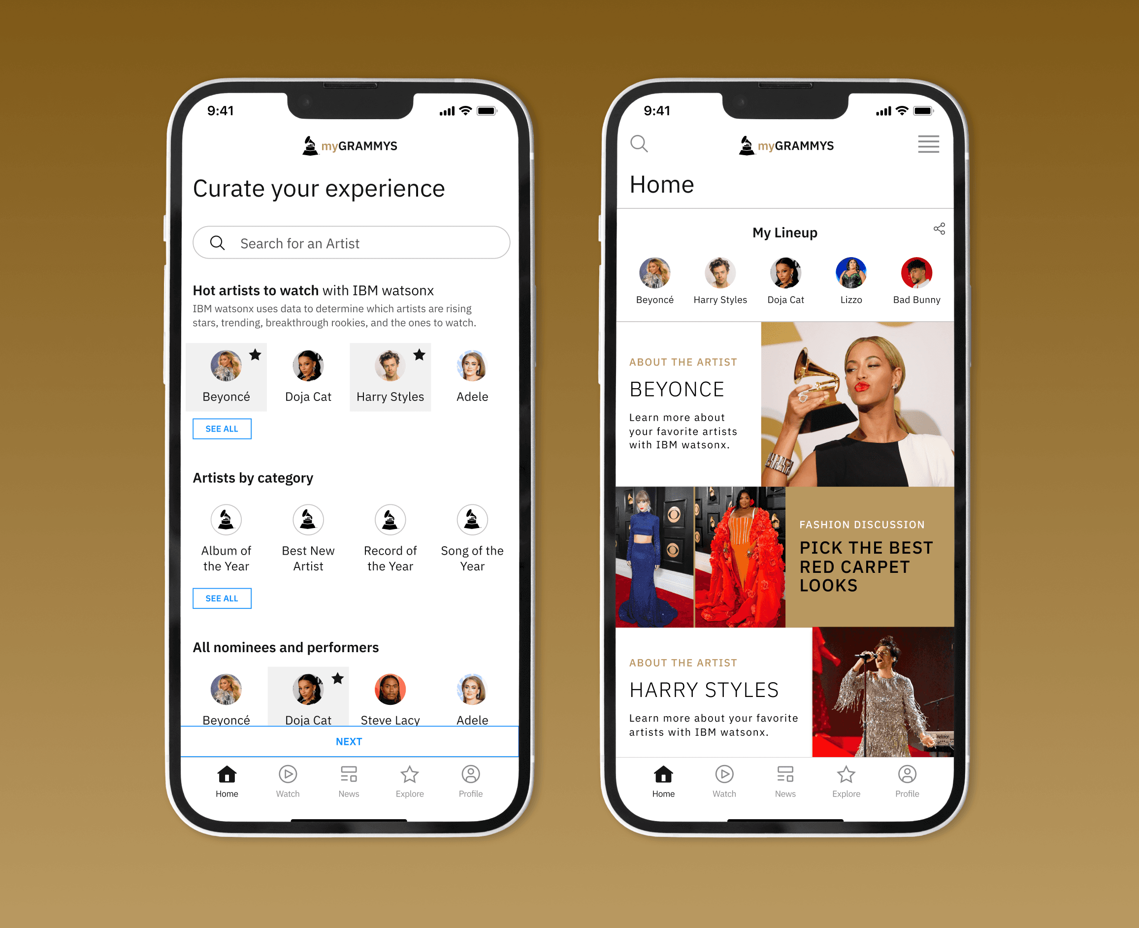 Through a collaborative Creative Jam with the client, we concepted the myGRAMMYS digital experience, a tailor-made, community-focused AI-powered mobile application and grammy.com website enhancement. The myGRAMMYS experience is driven by 3 core tenants: