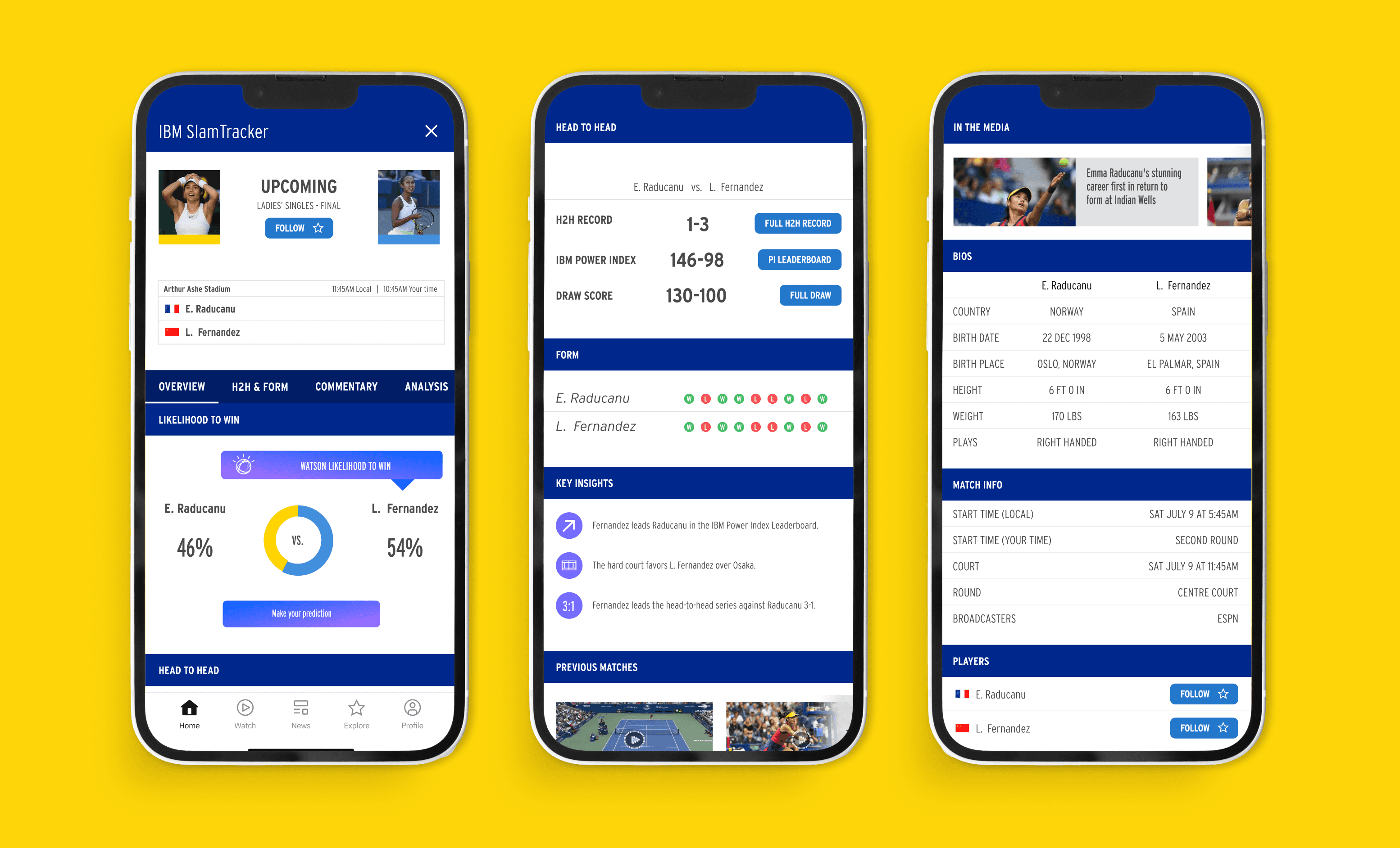 IBM partnered with the USTA to deliver an entirely new SlamTracker experience to the tennis world at the 2024 US Open Tournament. Our mission statement: IBM SlamTracker is the sports industry leading destination to preview a match, follow it live and catch-up on what happened afterwards.